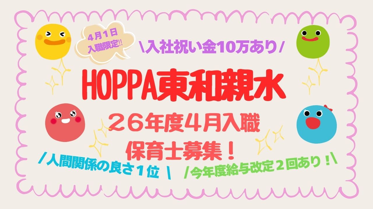 【保育士・正社員】足立区(亀有駅)★10月より月額手当増額★【HOPPA東和親水】